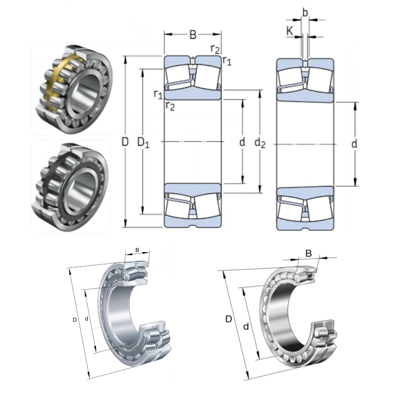 Spherical roller bearings can withstand high radial loads and moderate bidirectional axial loads. The bearing adopts high-strength brass solid cage or steel cage, which greatly improves the impact resistance, stiffness, and fatigue strength. Optimize the roller and raceway dimensions to further improve the bearing's load-bearing capacity.