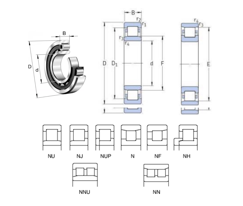 NF type, NJ type, etc. After special optimization design, the rollers are in line contact with