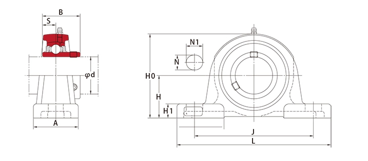 The outer diameter of the bearing and the inner diameter of the bearing seat are spherical, and there is an automatic centering function between the two, which can compensate for the misalignment of the axis and deformation of the installation bottom caused by installation errors.