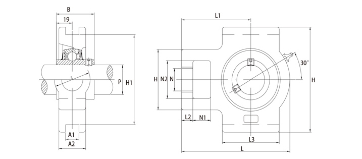 The outer diameter of the bearing and the inner diameter of the bearing seat are spherical, and there is an automatic centering function between the two, which can compensate for the misalignment of the axis and deformation of the installation bottom caused by installation errors.